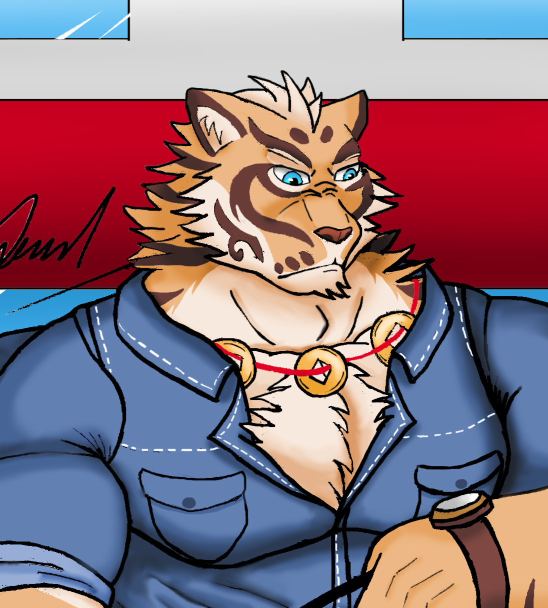 It was around 2018 I decide to be an artist, specially in furry and muscular figure.I was trying hybrid style due to limited technology using Photoshop, Mouse, and traditional art line. I'm using instagram to post, deviantart, and twitter in that era.My sona design wearing a cap at first to simplify the process but then removed as I could draw the hair I desire.
